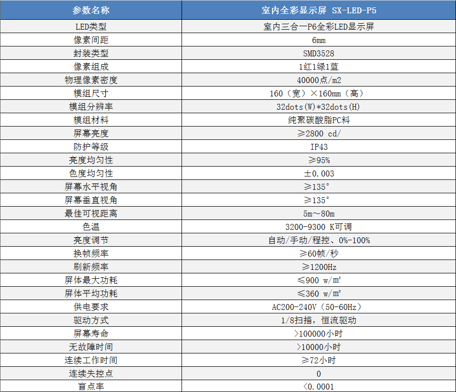 P6室內(nèi)小間距高清全彩LED顯示屏技術(shù)參數(shù):