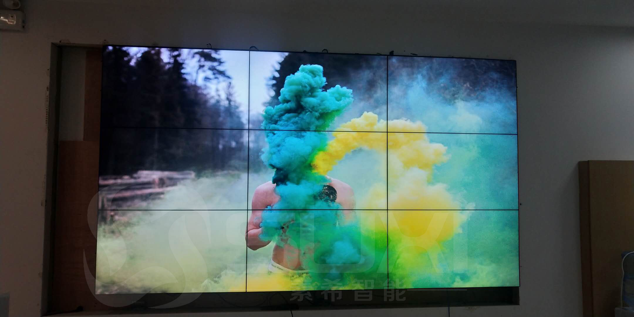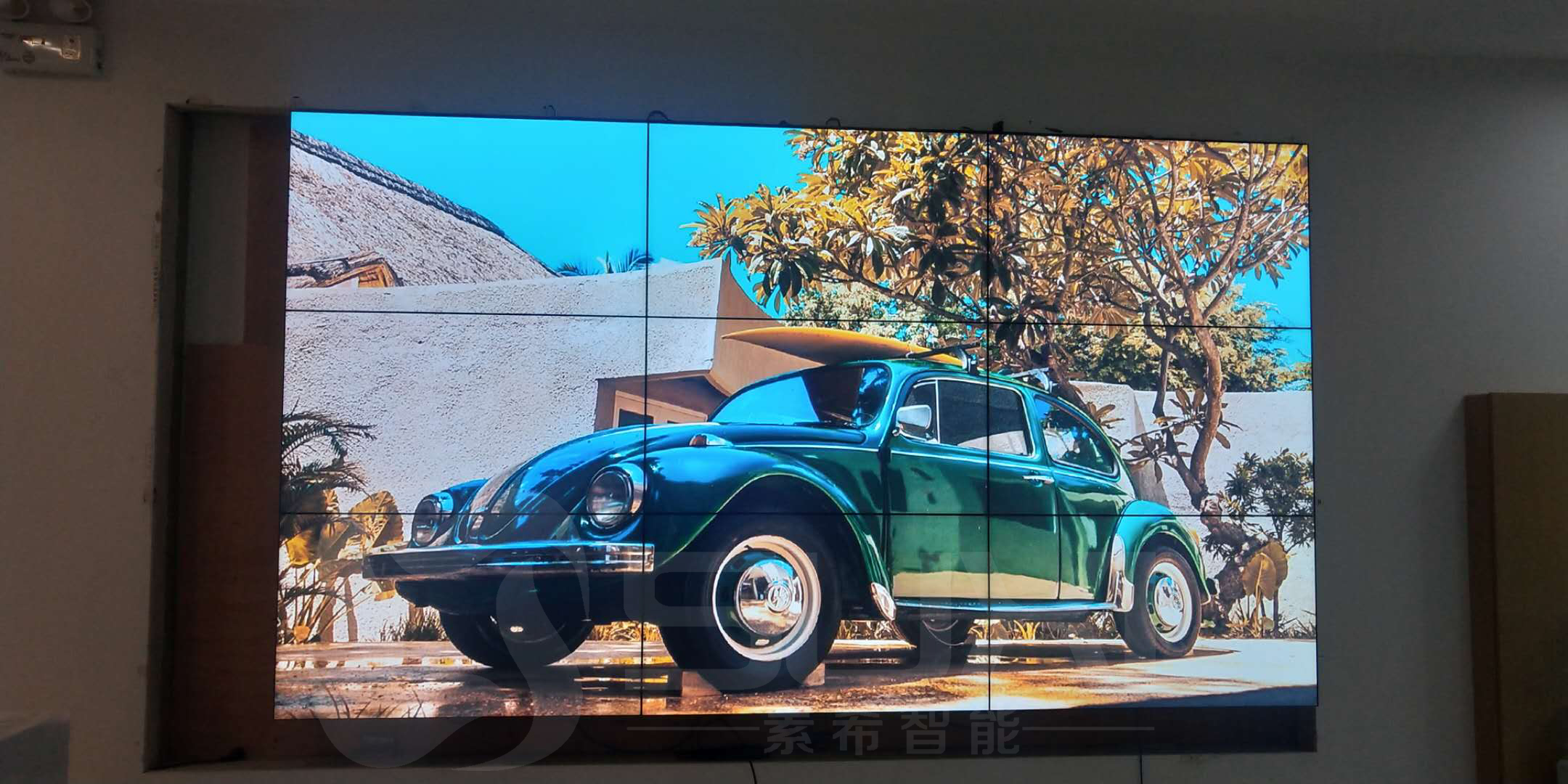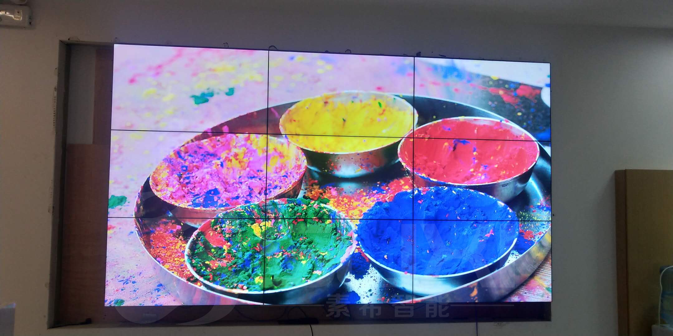 目前最常見(jiàn)的產(chǎn)品主要是電視機(jī),液晶拼接屏和LED顯示屏等,針對(duì)該公司企業(yè)展廳的面積和應(yīng)用需求,以及客戶的預(yù)算,我們最終安裝了3*3 3.5mm超窄邊液晶拼接屏。