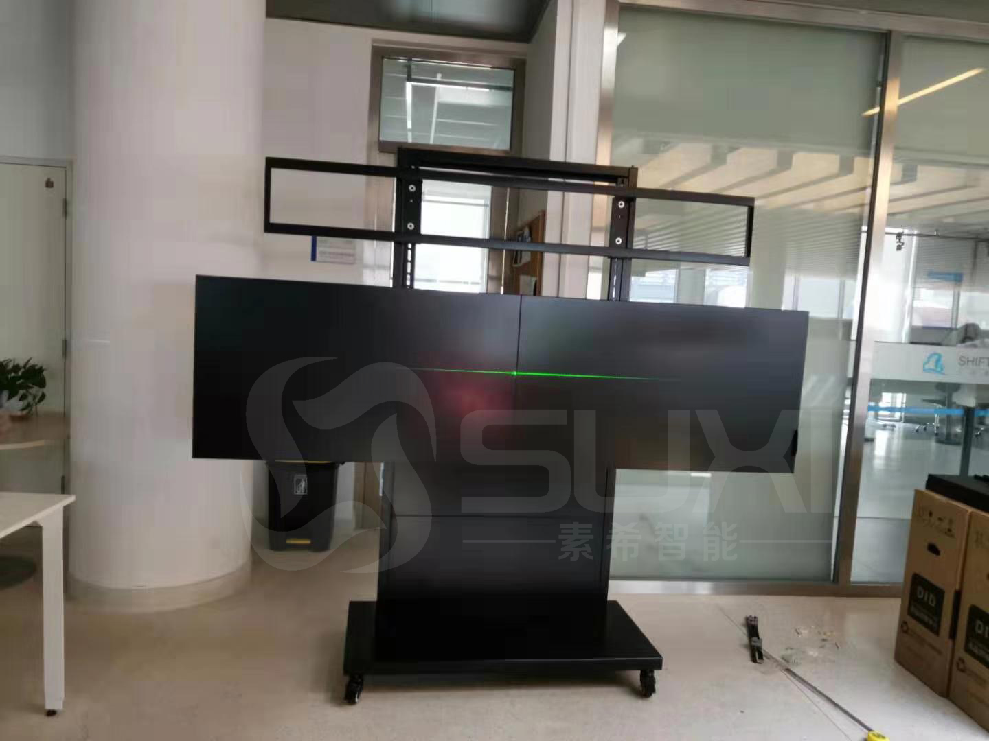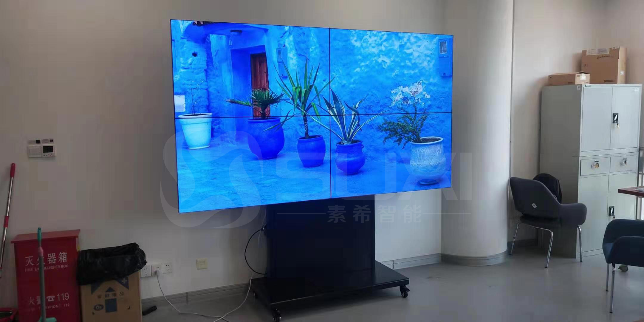 本次客戶采用的是三星55寸3.5mm液晶拼接單元,采用可移動(dòng)支架底座帶4個(gè)滑動(dòng)滾輪,分辨率為1920*1080亮度為700的高亮度,從客戶需求到看現(xiàn)場(chǎng)出方案以及安裝,客戶們都是比較滿意的。