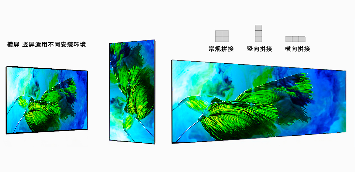 ③支持橫屏、豎屏、弧形、菱形等多種拼接顯示方式