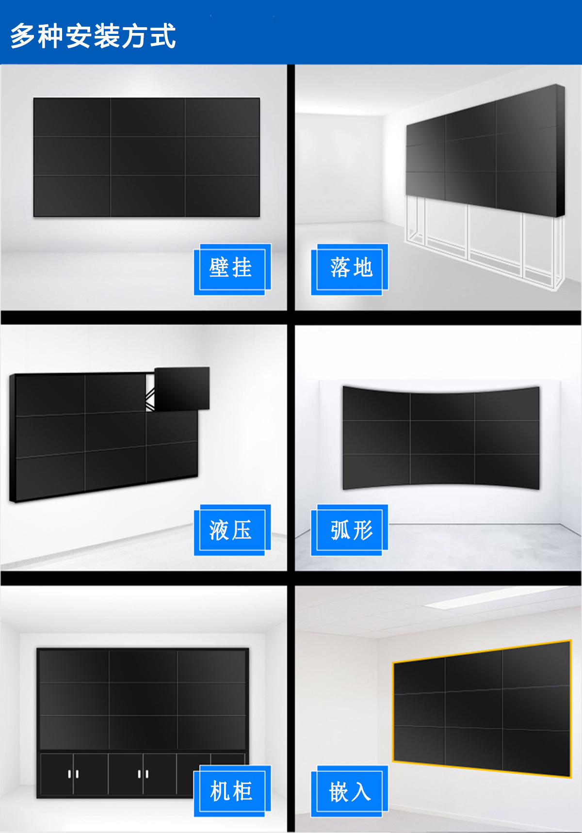 ⑥安裝方式可以壁掛式、液壓前維護式、內(nèi)嵌式、機柜式、可移動式等